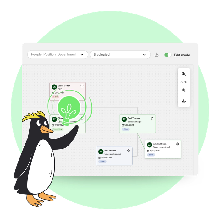 HR admins control updates while everyone else views the same live chart – keeping your data accurate and secure.