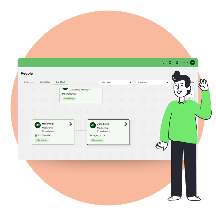 Built from Smartly HR data, your Org Chart stays up to date automatically. Changes in employee profiles or the Org Chart sync both ways, so you never double-handle information.