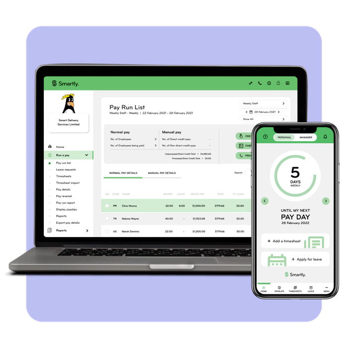 Say goodbye to wrestling with software built for big international corporations – Smartly is made in New Zealand, specifically for Kiwi SMEs. We've put in a bunch of great time-saving features you'll love – and left out all the confusing and complex stuff you don't need.